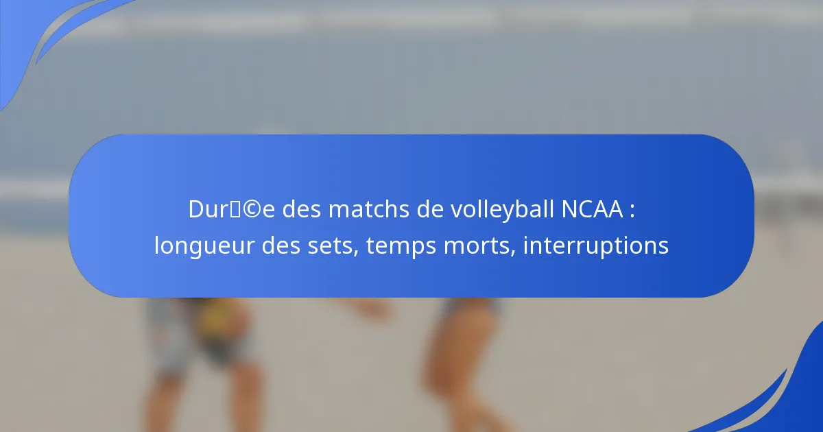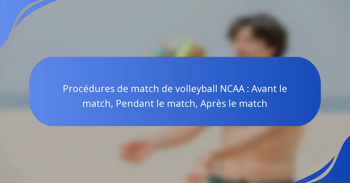 Les procédures de début de match en volleyball NCAA impliquent une série d’étapes organisées pour garantir que le match commence de manière fluide et équitable. Ces procédures incluent des réunions d’avant-match, des routines d’échauffement et des rôles officiels qui doivent être respectés pour se conformer aux règlements de la NCAA.