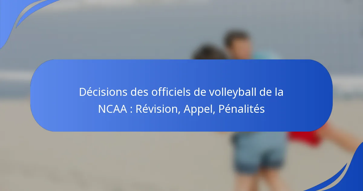 Les sanctions pour inconduite dans le volleyball NCAA sont appliquées à travers un système structuré impliquant diverses agences de contrôle, des écoles individuelles et un processus d’enquête clair. Ces sanctions peuvent aller des amendes aux suspensions, en fonction de la gravité de la violation.
